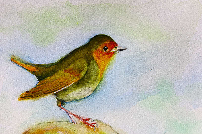 水彩畫習作 作品33日本歌鴝、知更鳥