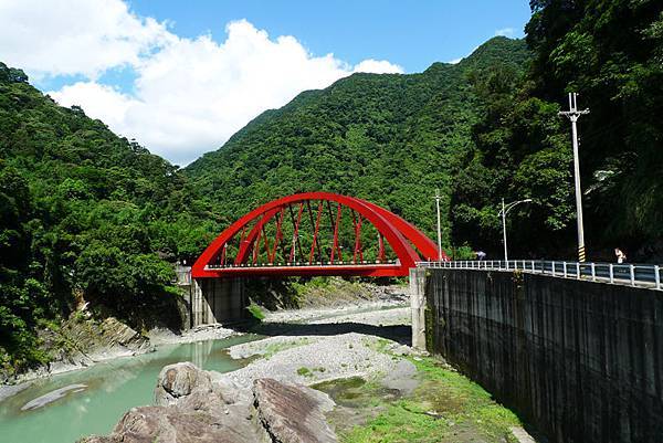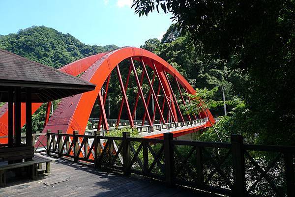 漆上紅色宏偉壯觀的加九寮觀光橋是很不錯的攝影題材