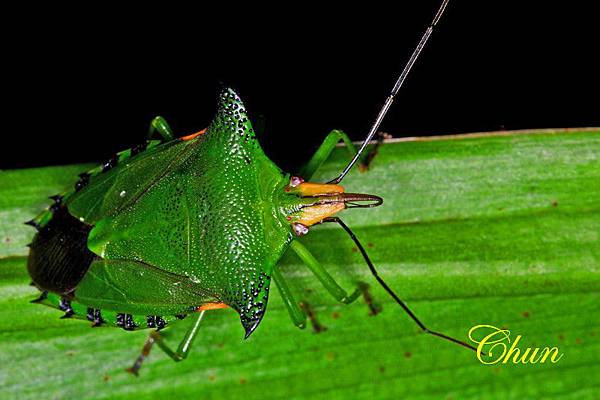 兩複眼間具口絲端部青綠色過口器轉為褐色