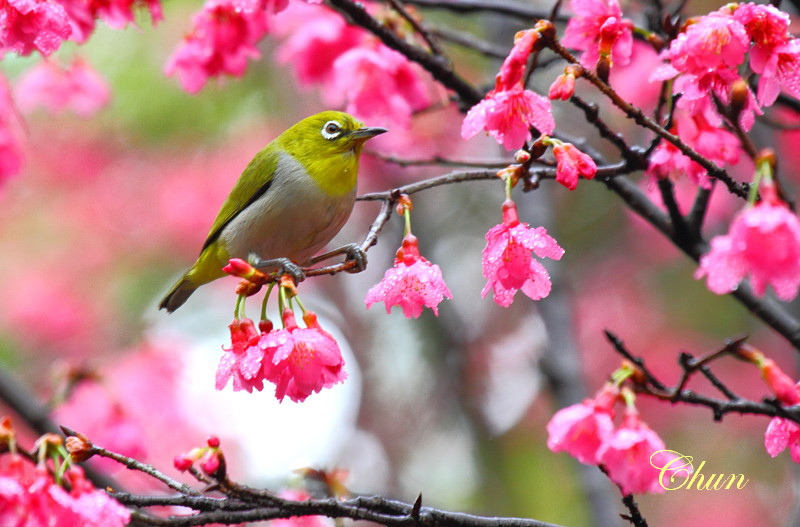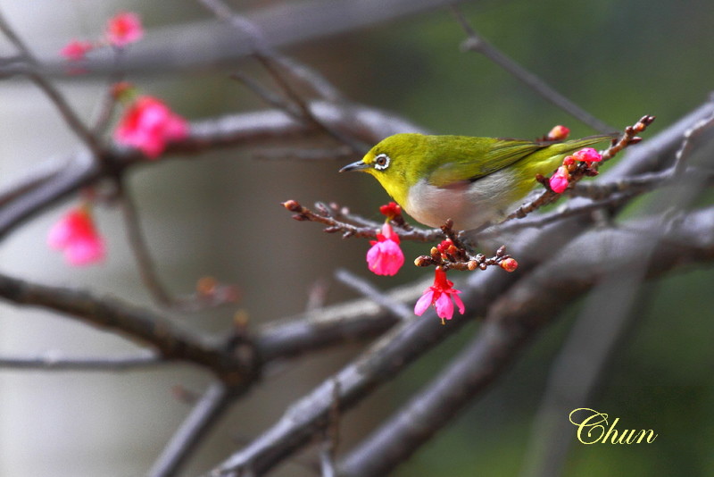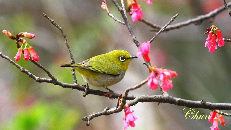 賞花的同時欣賞綠繡眼演出一場免費的覓食秀