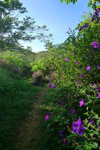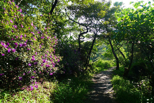 步道沿途栽種不少杜鵑、波斯菊、鳳仙花、紫牡丹…等花卉