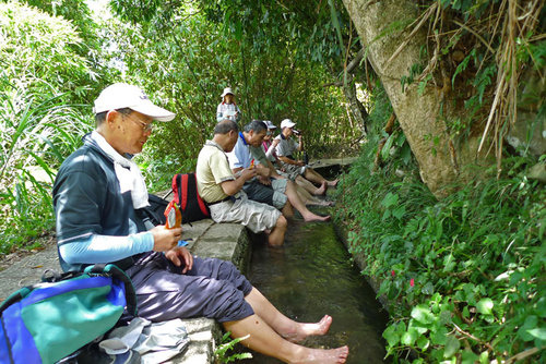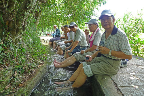 大伙興沖沖的找個陰涼的地方坐下泡起腳來