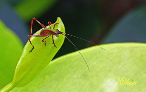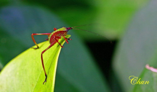 黃金榕葉上,見到一隻不斷抖動細長觸角的小昆蟲
