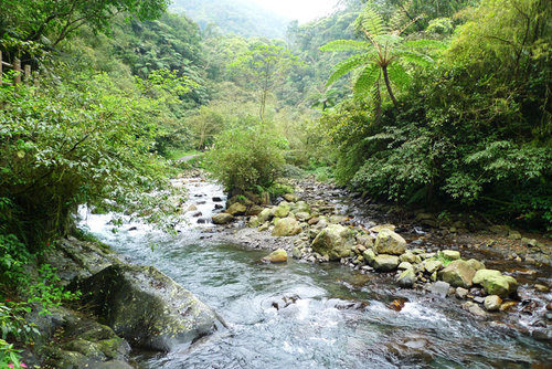 步道沿著溪畔蜿蜒延伸到戈霸瀑布全程1.8公里