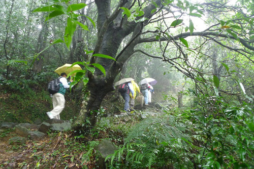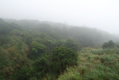 蒙著一層霧的山中景緻顯得神秘、朦朧