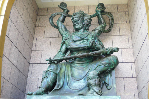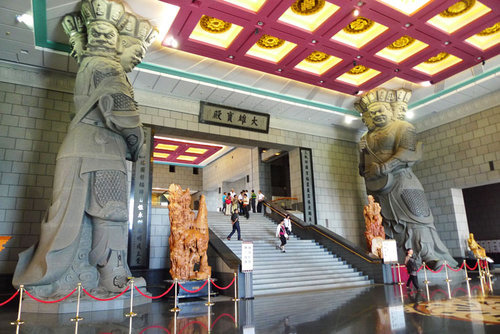 大雄寶殿內四根巨大的柱子巧妙的化為四大天王的塑像