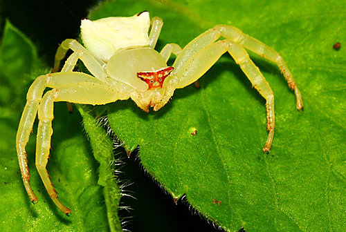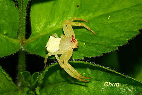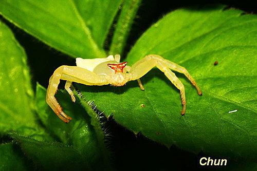 像極了螃蟹,眼域部份有三角形標記,是三角蟹蛛名字的由來
