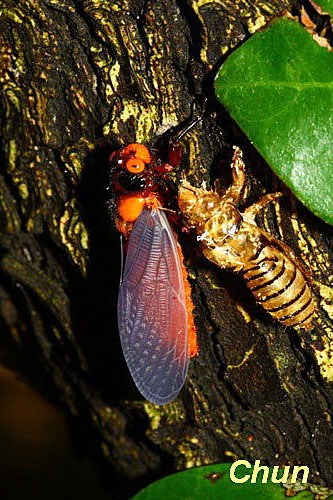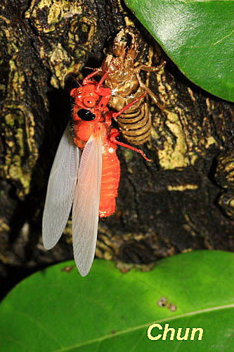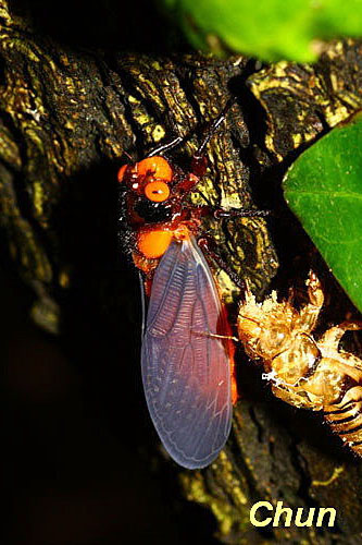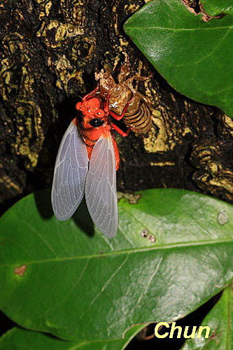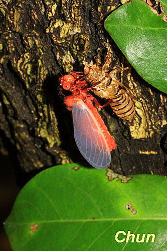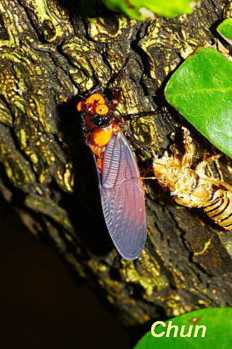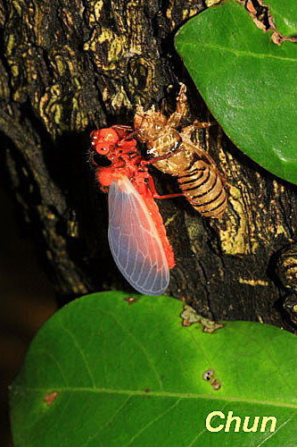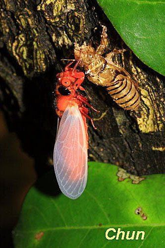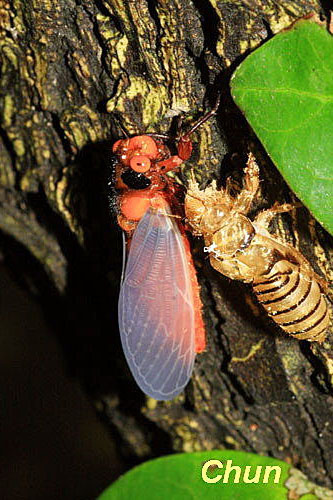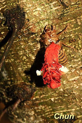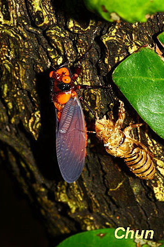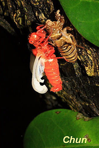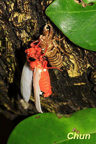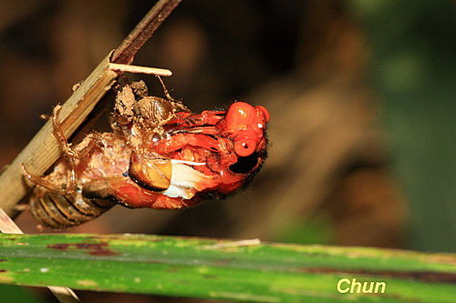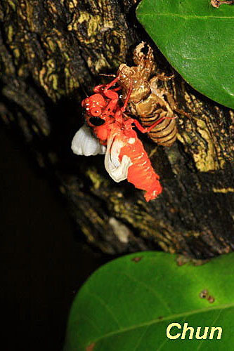 金蟬脫殼。黑翅蟬羽化記錄 2011-06-11記錄於虎頭山