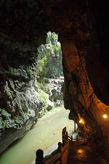 往洞外見到雄偉的岩壁頓時覺得人好渺小