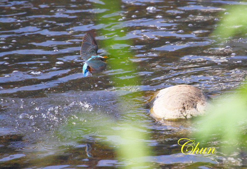 順利的抓拍到翠鳥入出水的畫面
