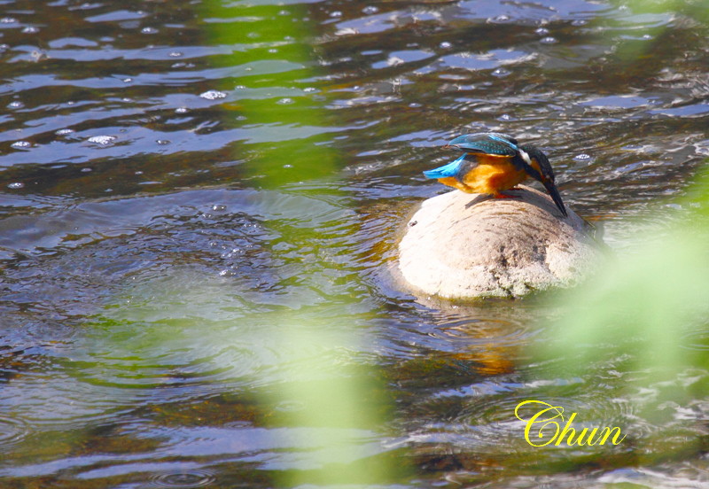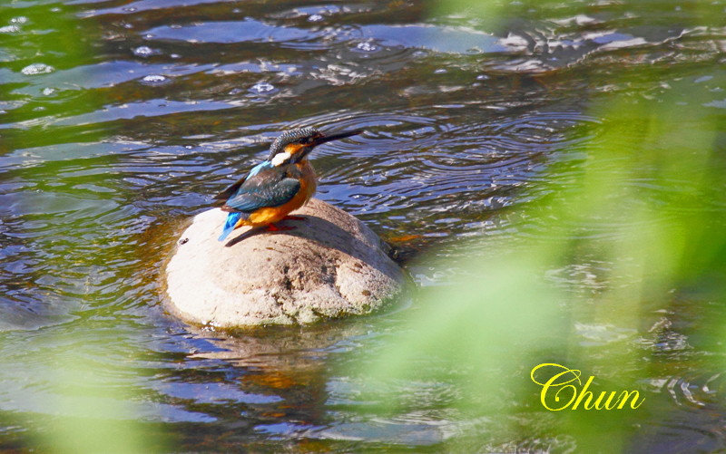 雄雄見到一羽翠鳥(雄)站在石頭上