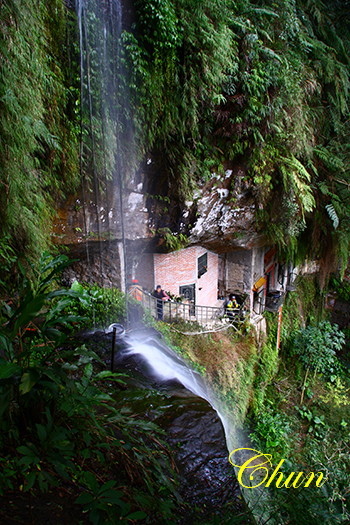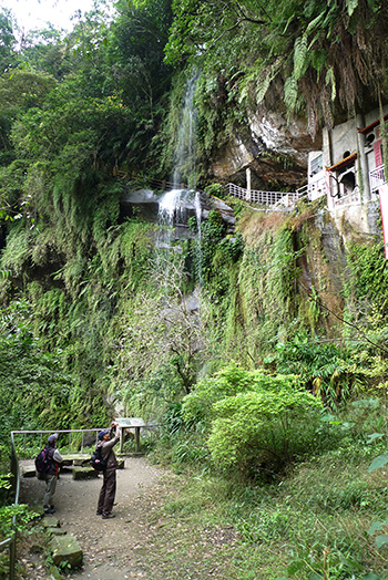銀河洞 瀑布在廟宇的的右側瀉下構成一幅絕妙的畫面