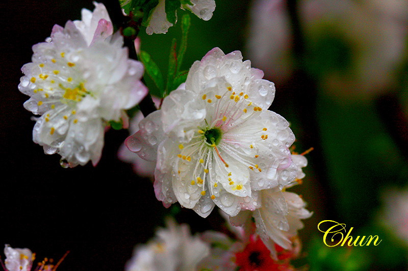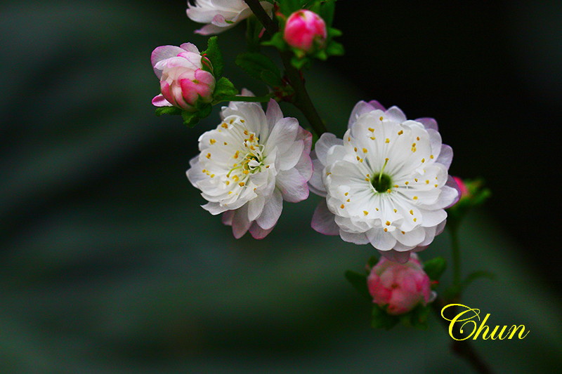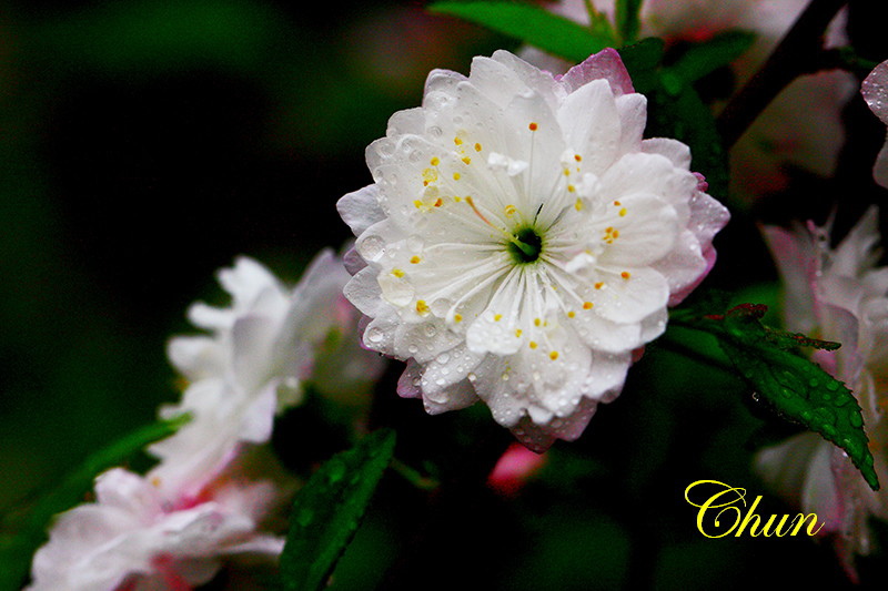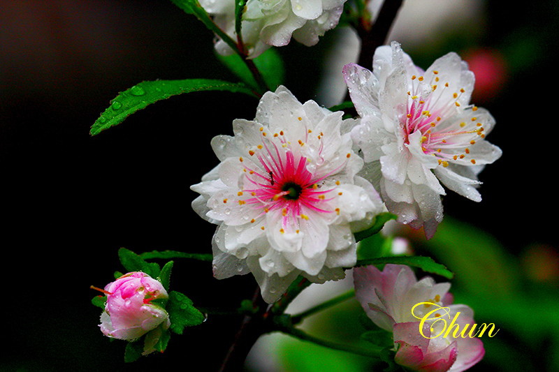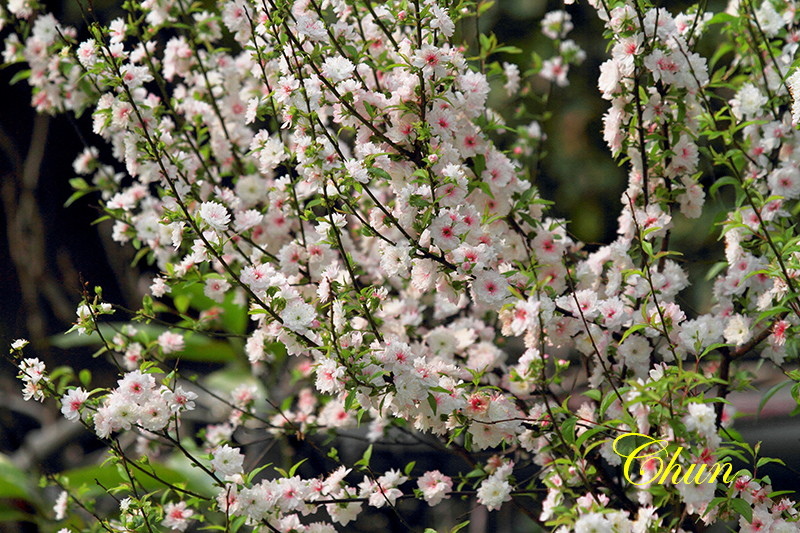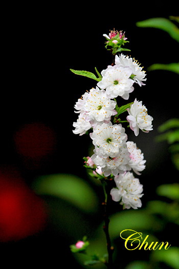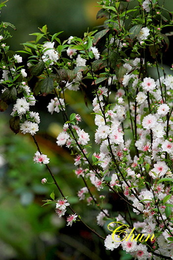 見到兩盆盛開的郁李