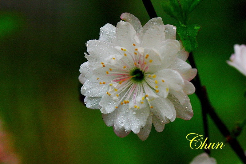 花瓣白色或淡紅色,倒卵形