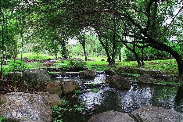 將地形景觀、植物景觀、水流景觀及運動設施結合