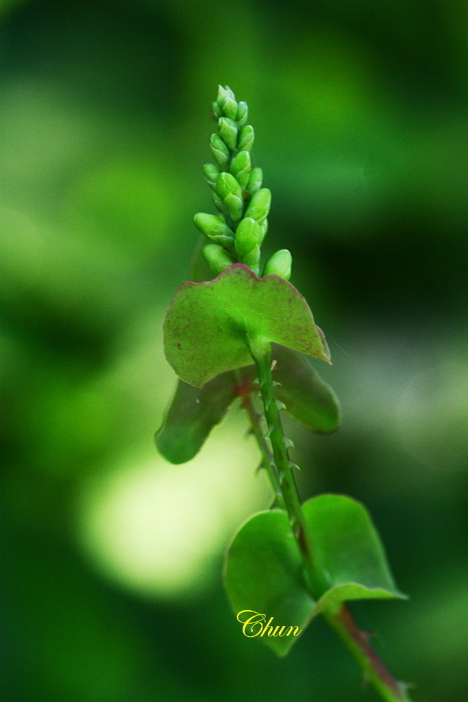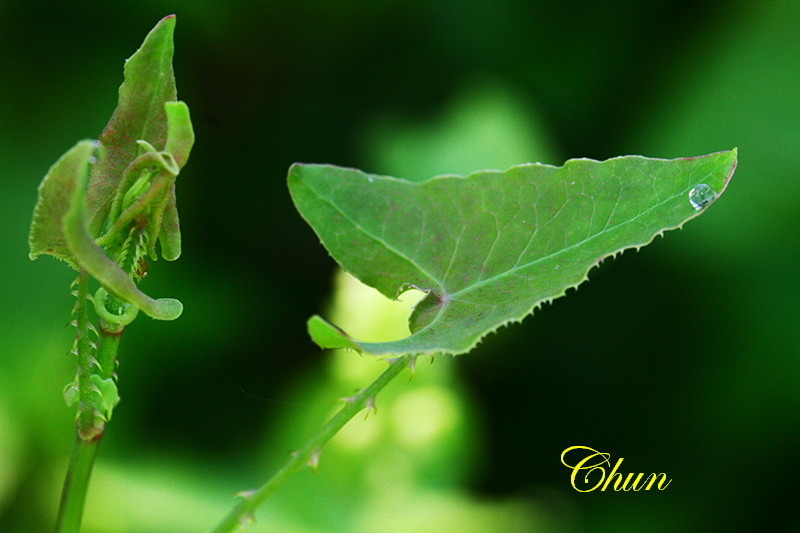 托葉鞘短、圓形,莖看來就像從其中心穿過