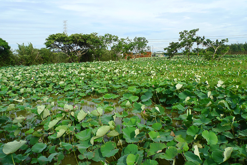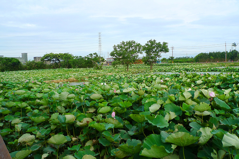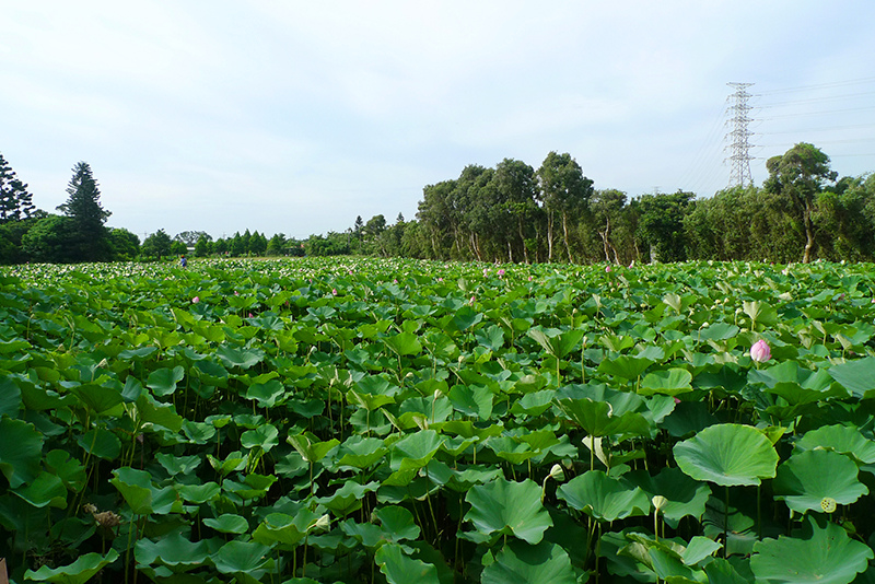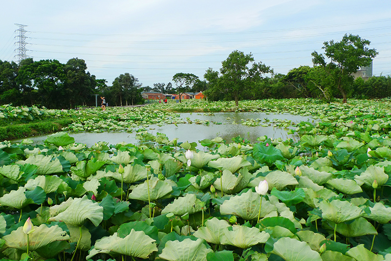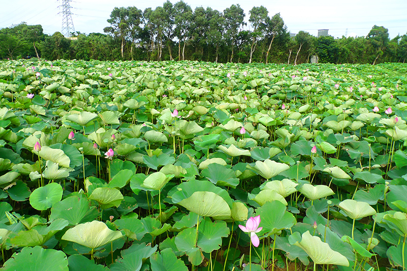 陣陣強風,掀翻荷葉,彷彿動作整齊劃一的啦啦隊舞動