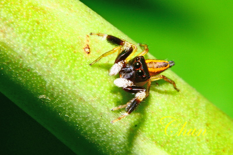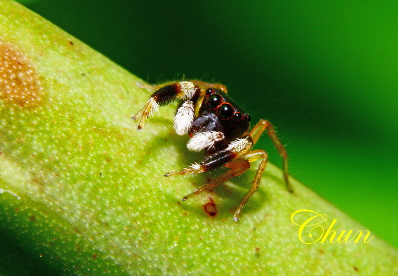 觸肢暗褐色,螯肢黑褐色,腹背褐色