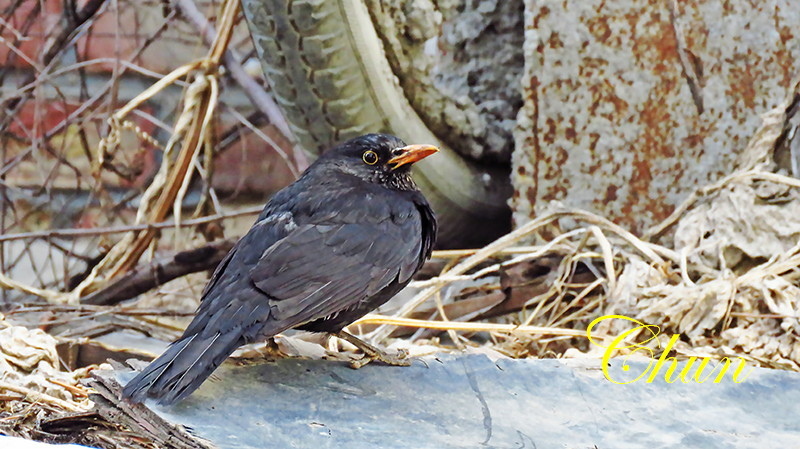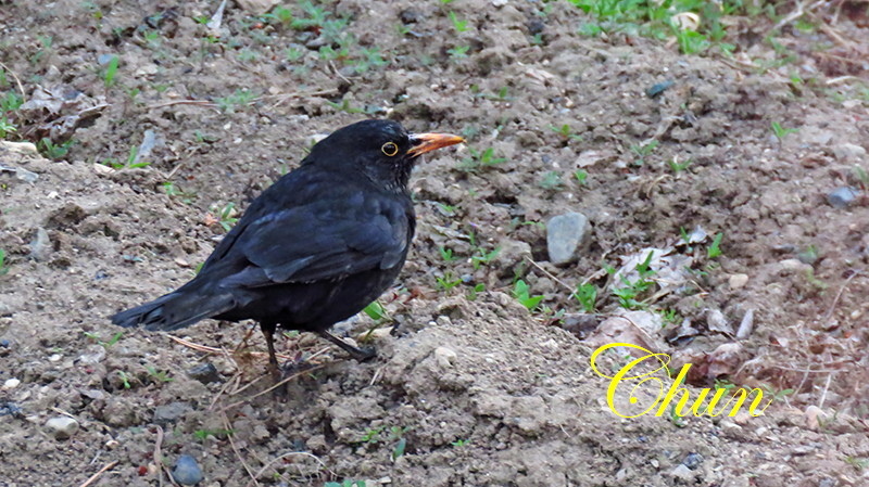 ↑雄鳥全黑色,嘴橘黃,眼圈略淺,腳黑
