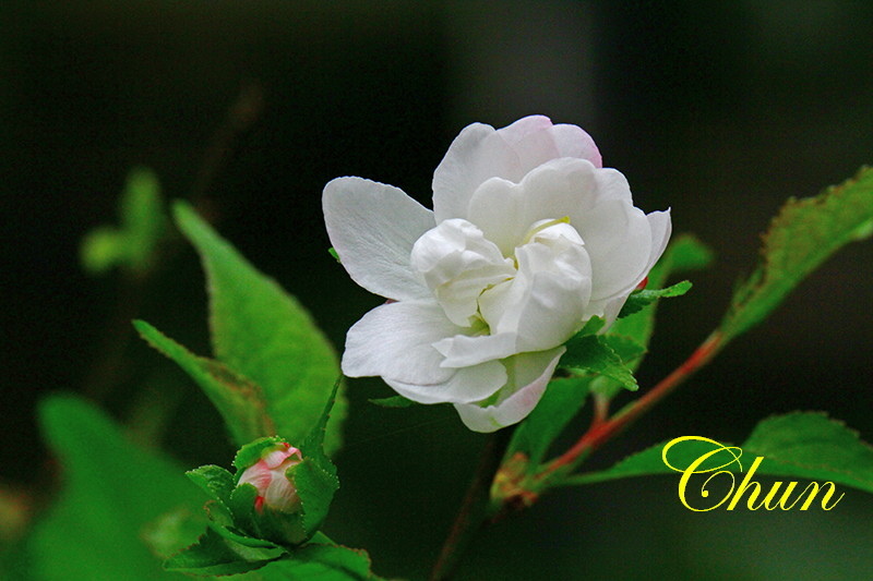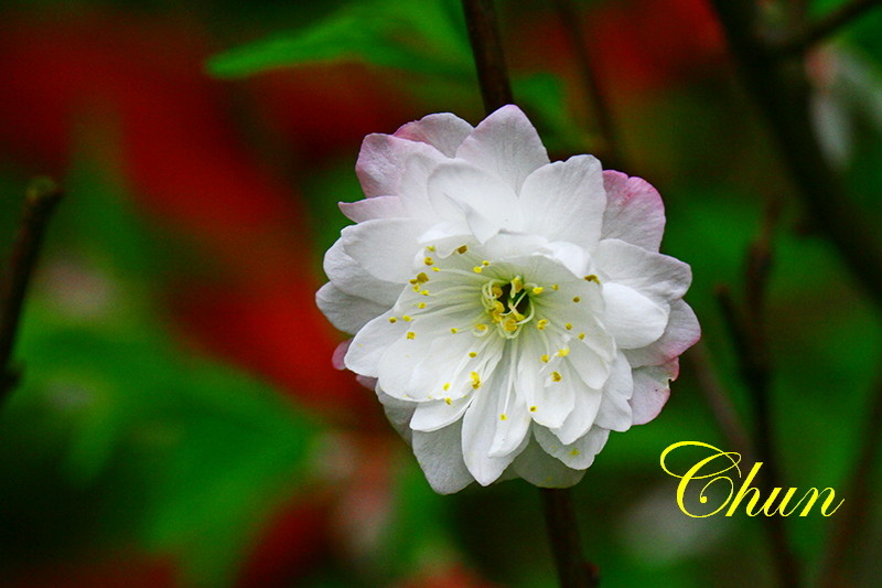 花瓣白色,後面花瓣有淡紅色分布,倒卵形
