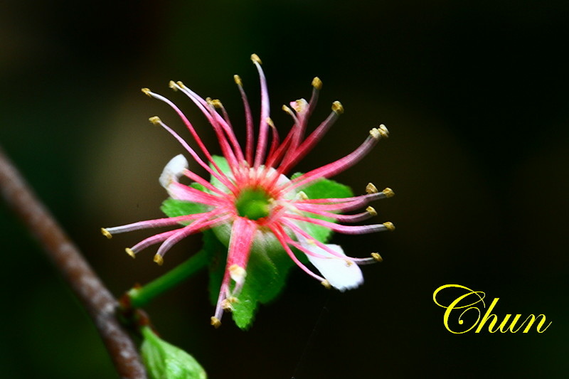 花凋謝時,花瓣掉光,僅剩粉紅色的花絲與黃色的花藥