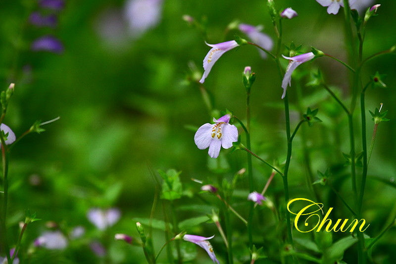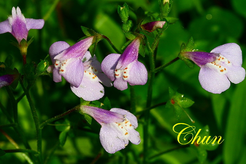 淡粉紅色的通泉草相互較勁,彼此爭豔,美不勝收