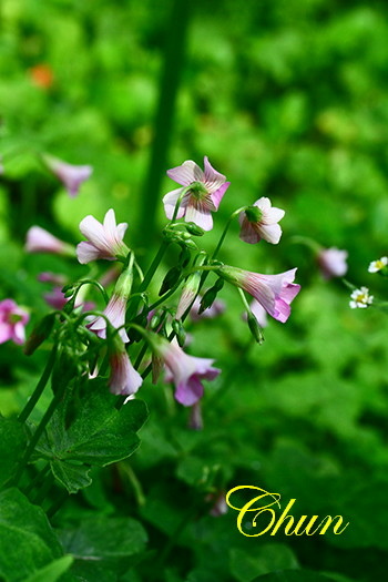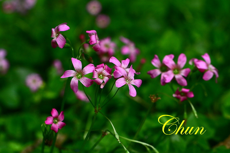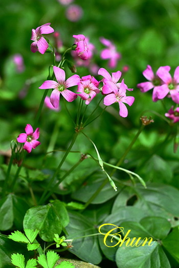 紫花酢漿草,伸長花序綻放朵朵紫紅色的花朵