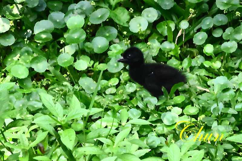 雛鳥全黑色,像一團黑絲絨活動的毛球