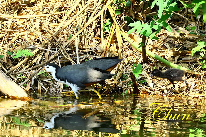 早上8點不到已在生態池等候拍攝白腹秧雞家庭