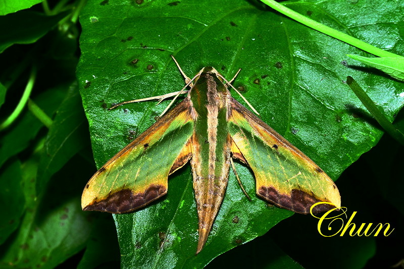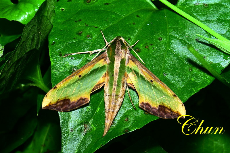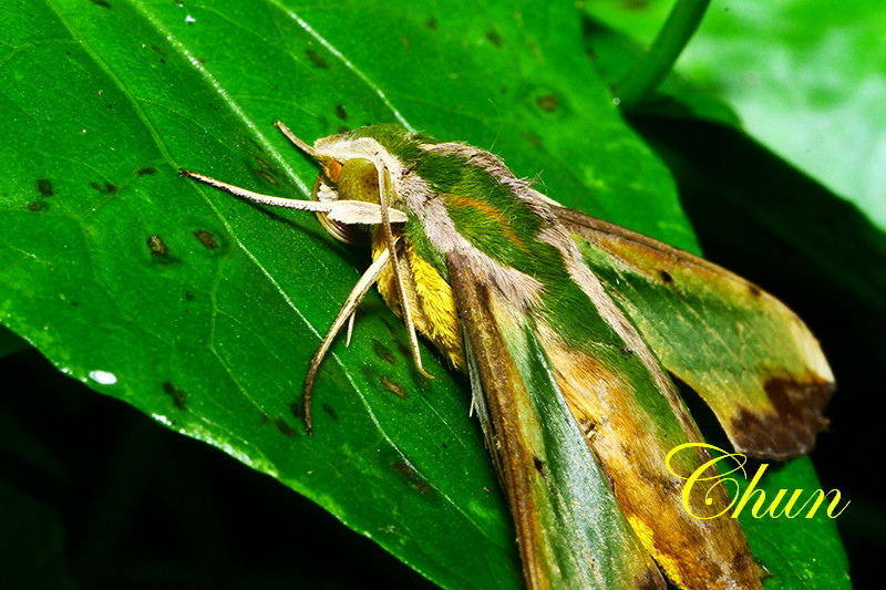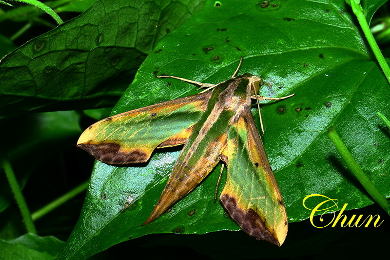 斜綠天蛾體色綠色又具有黃、褐色的分布