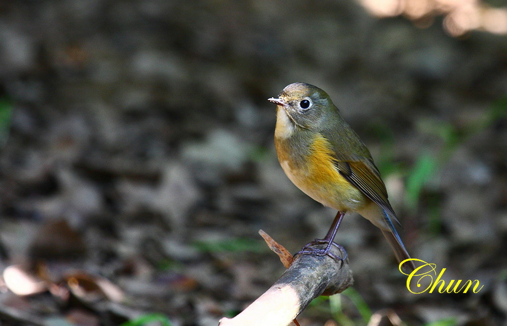 雌鳥:體橄褐色,腰至尾羽灰藍色