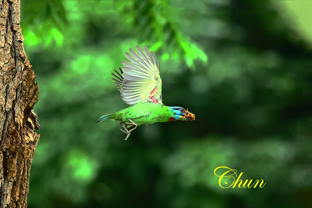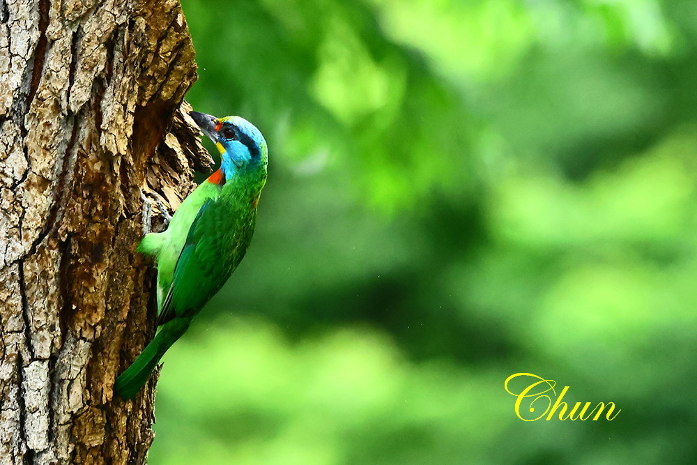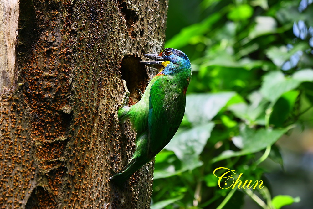 五色鳥「嘓、嘓嘓嘓嘓」的鳴叫聲,迴盪在翠綠的山林間