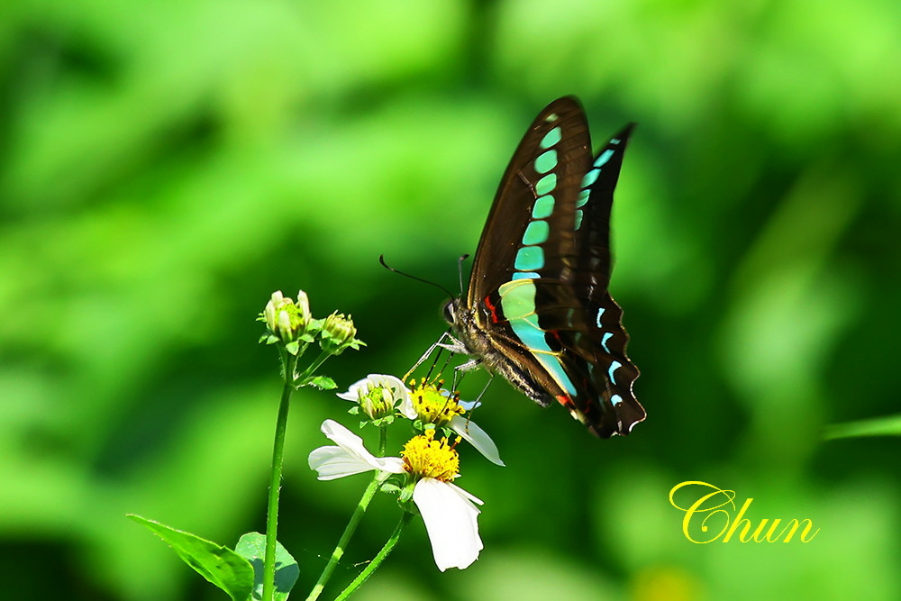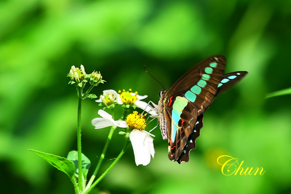 台灣白紋蝶、青帶鳳蝶、台灣黃斑蛺蝶,很捧場