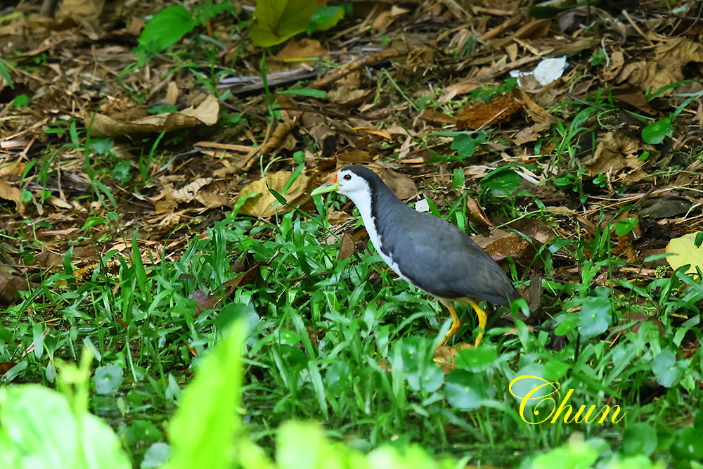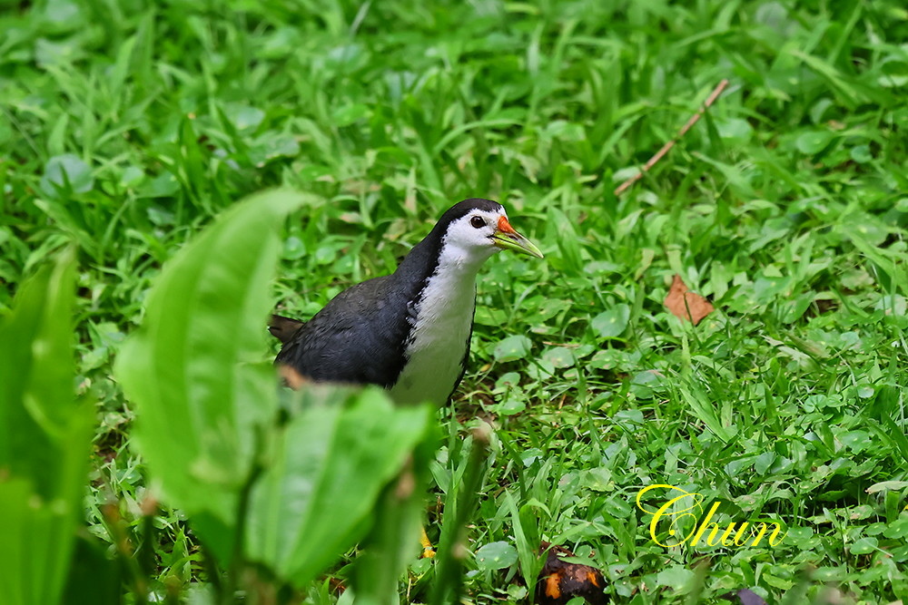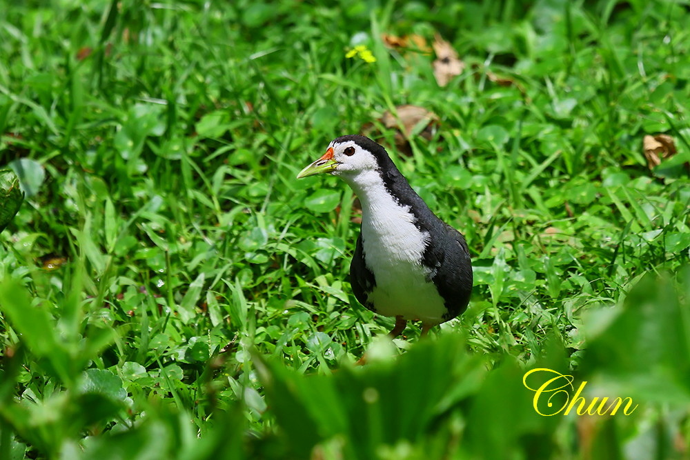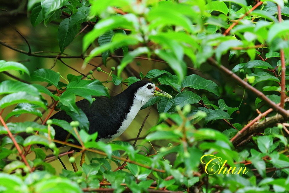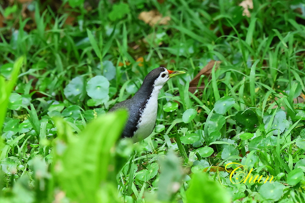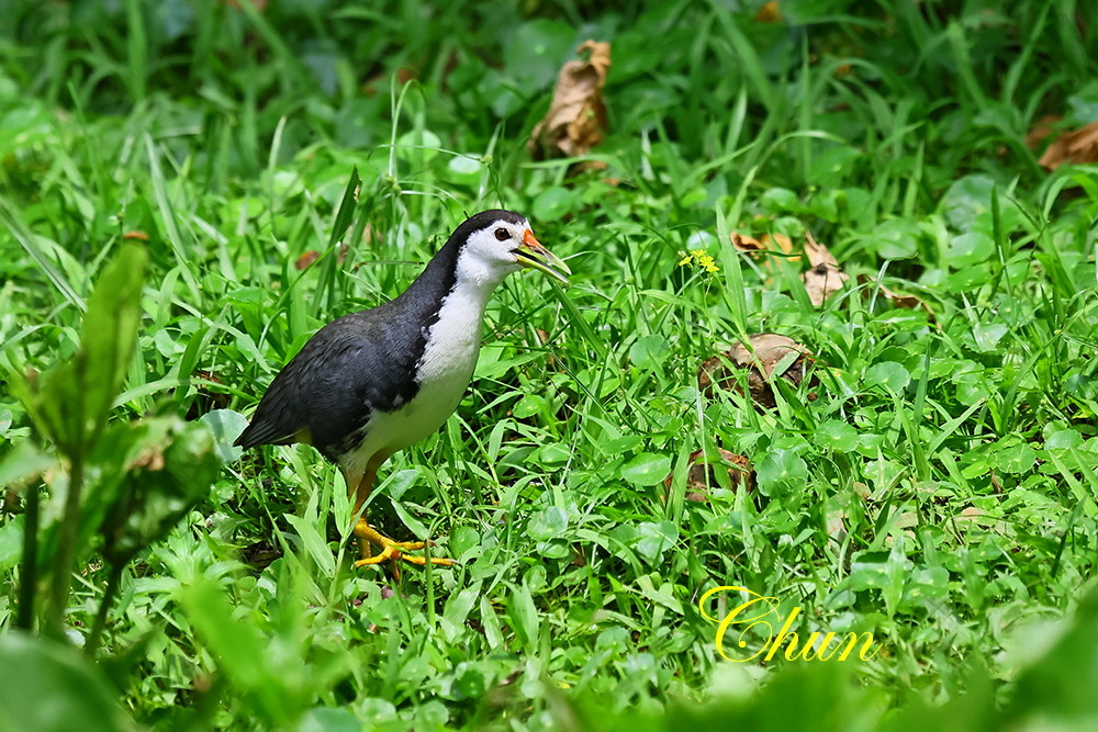 另一端,對岸草叢中闖出一隻白腹秧雞